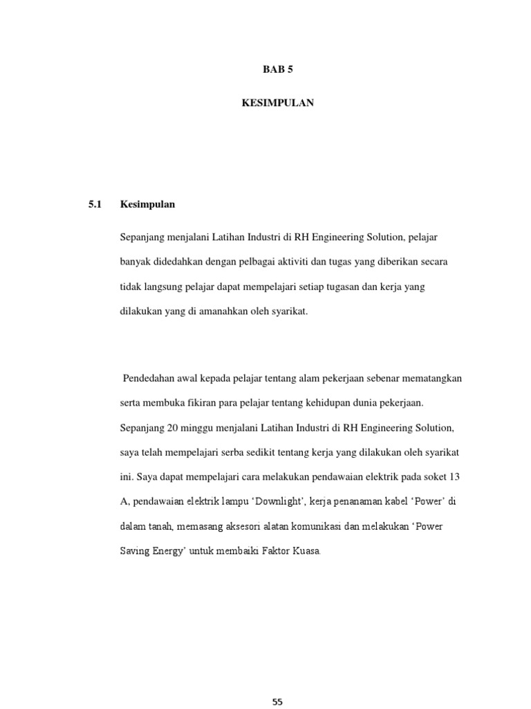 Bab 5 Kesimpulan Latihan Industri Pdf